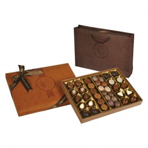 Intr-o cuie de saten albastru gasim o gama larga de bombonele pline de savoare ,cu diverse creme si culori
